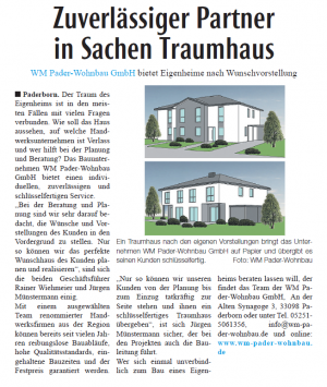 WM Pader-Wohnbau GmbH bietet Eigenheime nach Wunschvorstellung